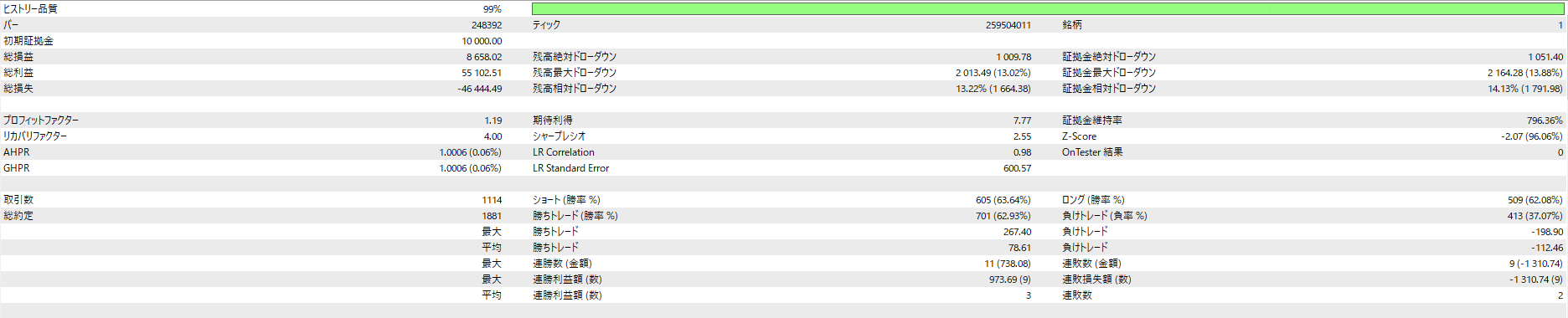 「最初に市場が形づくる箱(Core Box)」を基準に戦略が変化するため、過度なフィルタに頼らず自然な相場追従が可能になります。